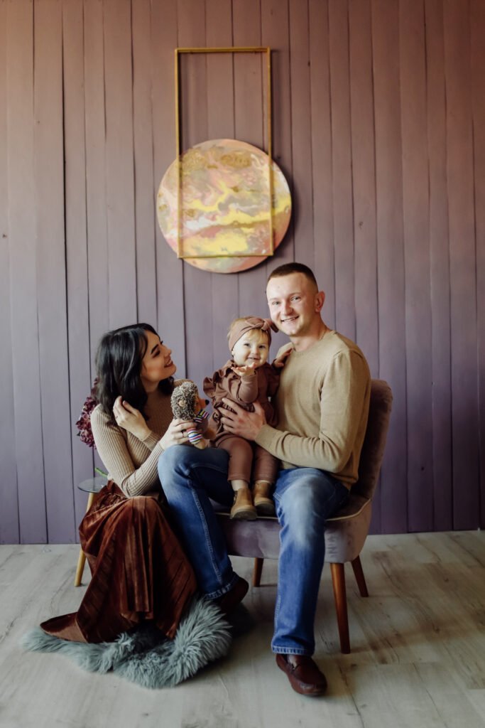 Timeless portraits and family photographs created in professional studio setups with natural expressions.